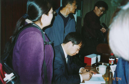 中国金融市场的未来"的讲座。学生让丁教授签字留念。